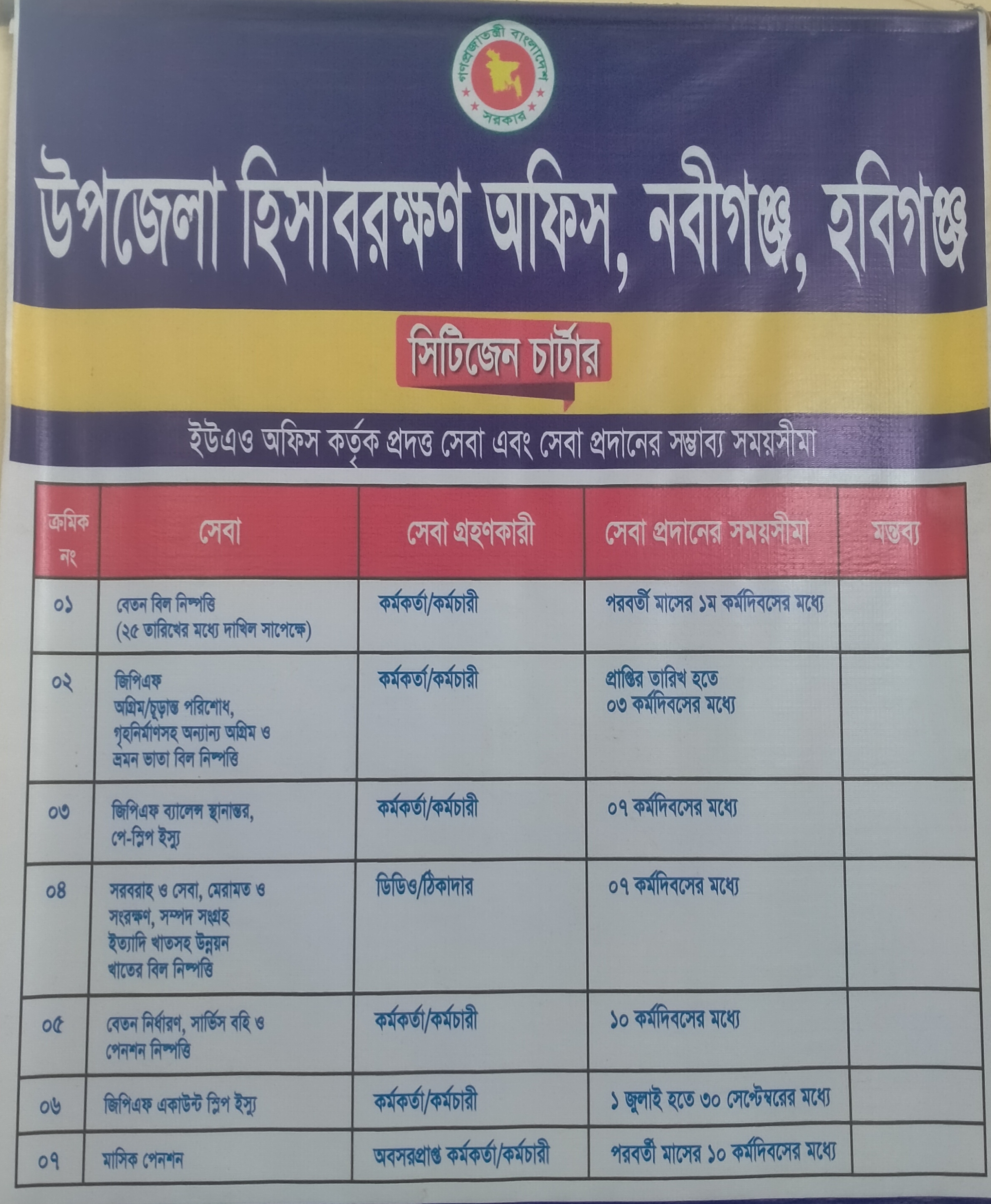 উপজেলা হিসাব রক্ষণ অফিসের সিটিজেন চার্টারঃ-